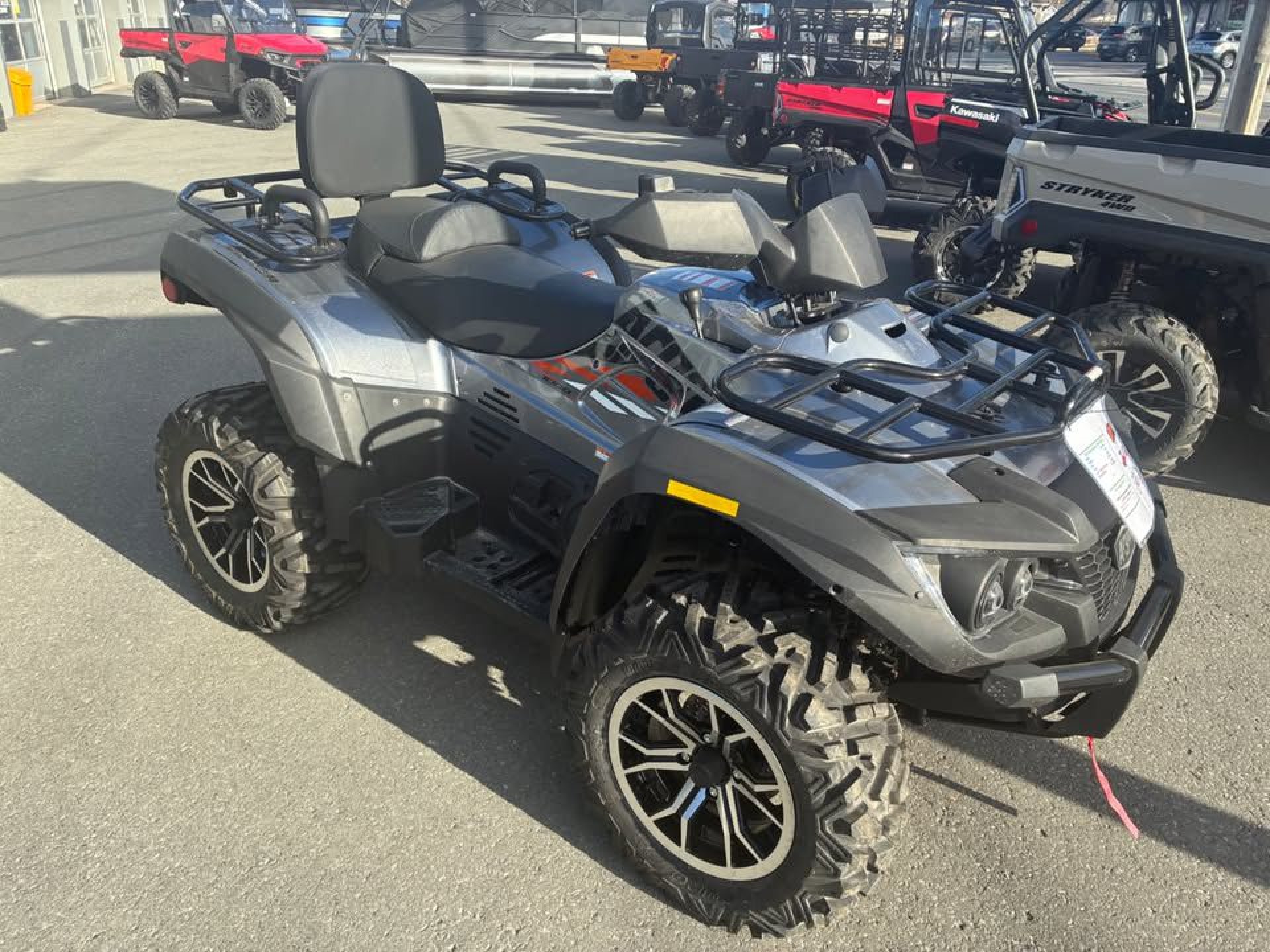 Coming standard with 26" Duro tires seated on aluminum wheels, these aggressive off-road tires provide superior traction when venturing off road.