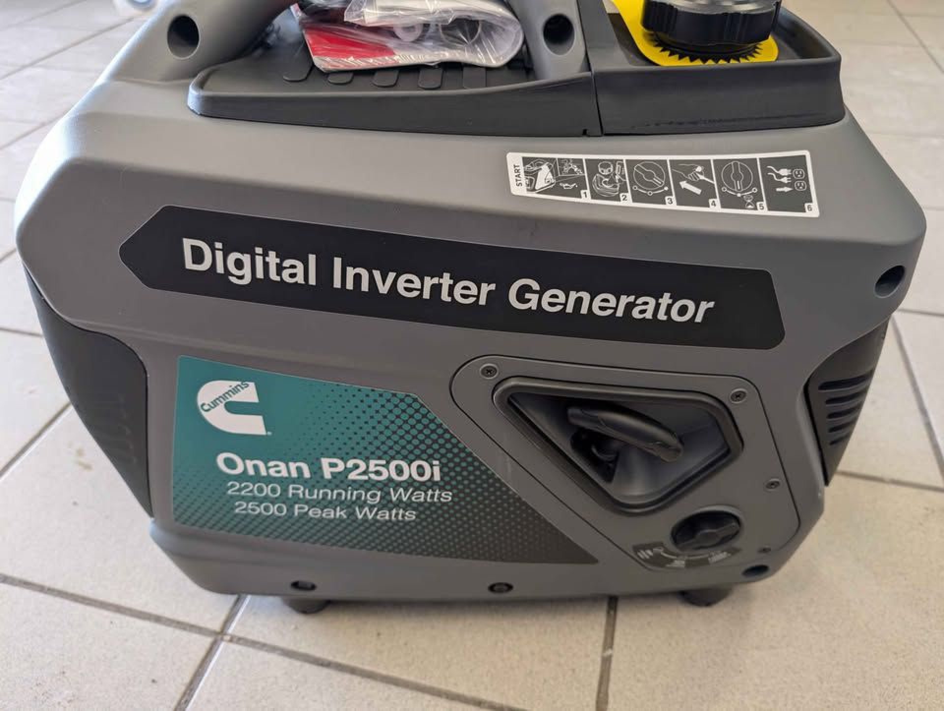 The Cummins Onan P2500i is a compact and lightweight inverter generator designed for quiet, portable power. Measuring approximately 19.75 × 10.5 × 18.25 inches and weighing 48 lbs (21.8 kg), it’s easy to transport and store. The gasoline-powered unit includes a 1-gallon fuel tank and delivers up to 10 hours of runtime at 25% load, making it well suited for camping, RV use, and light backup power