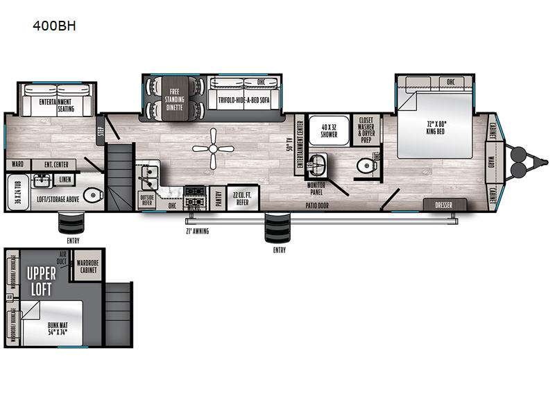 The 2023 Forest River Sandpiper 400BH is the ultimate destination trailer designed for larger families or groups who enjoy extended stays. This spacious model features triple slides, a loft area, and two full bathrooms, offering comfort and convenience for everyone. Whether you're entertaining, relaxing, or preparing a meal, this trailer is packed with family-friendly features to make your experience unforgettable.