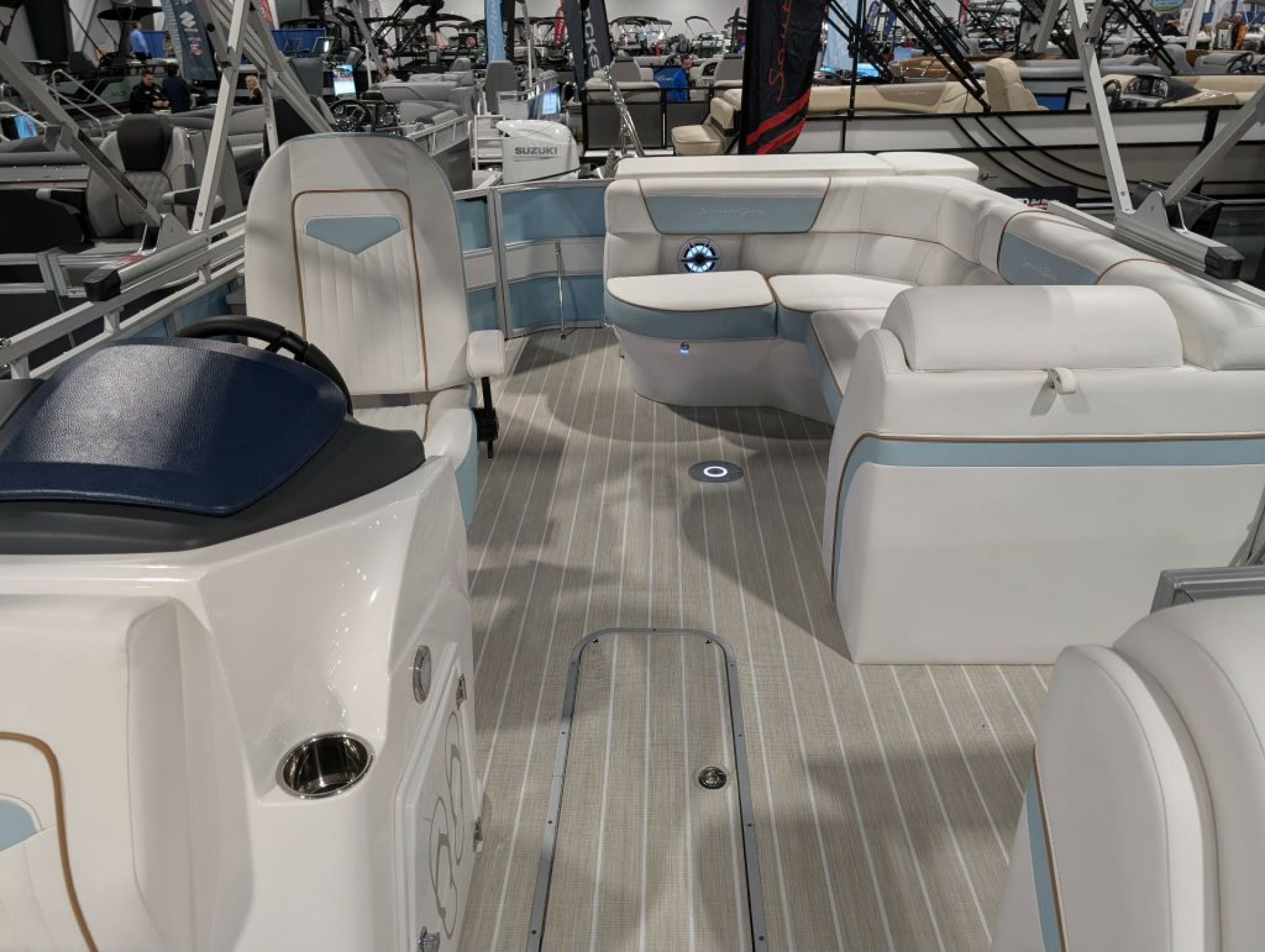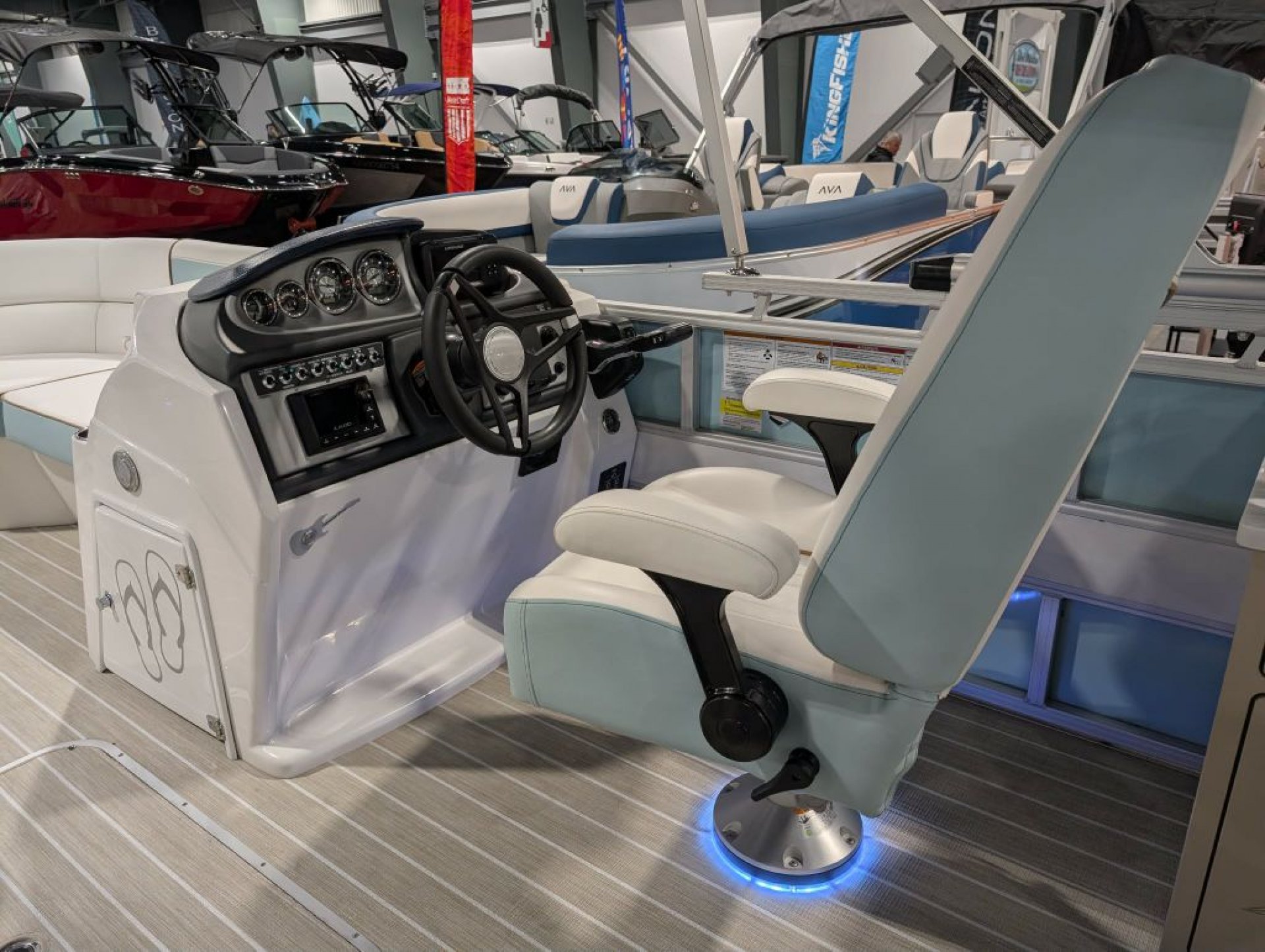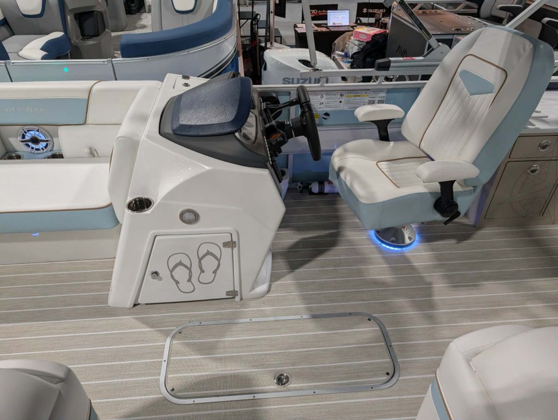 Integrated lighting throughout the deck and under-seat areas enhance visibility and style, while LED docking lights offer added safety during evening returns to the marina.