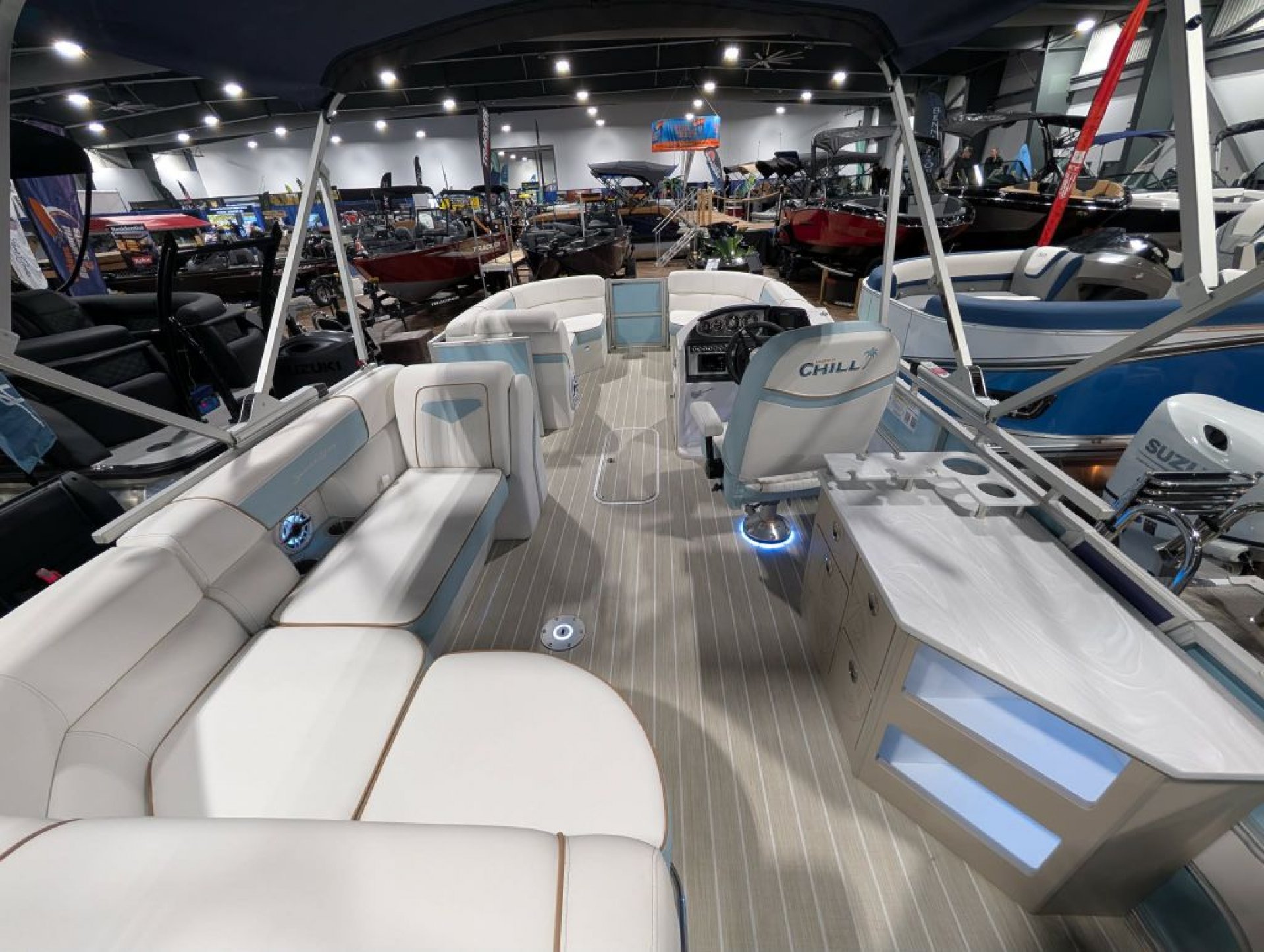 High-end marine-grade upholstery, multi-tone vinyls, and ergonomic seating provide comfort and style. Paired with designer accents and optional LED lighting packages, the 222CR Chill feels like a floating lounge.