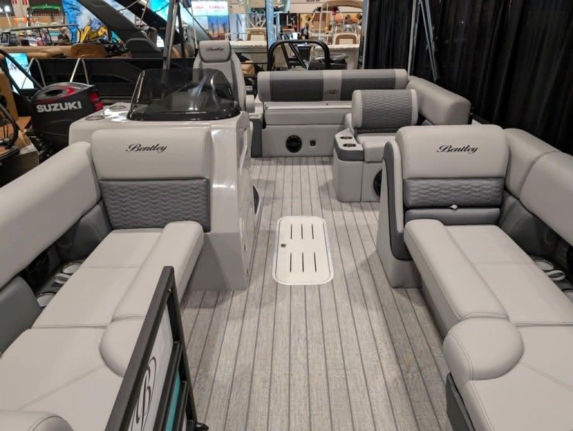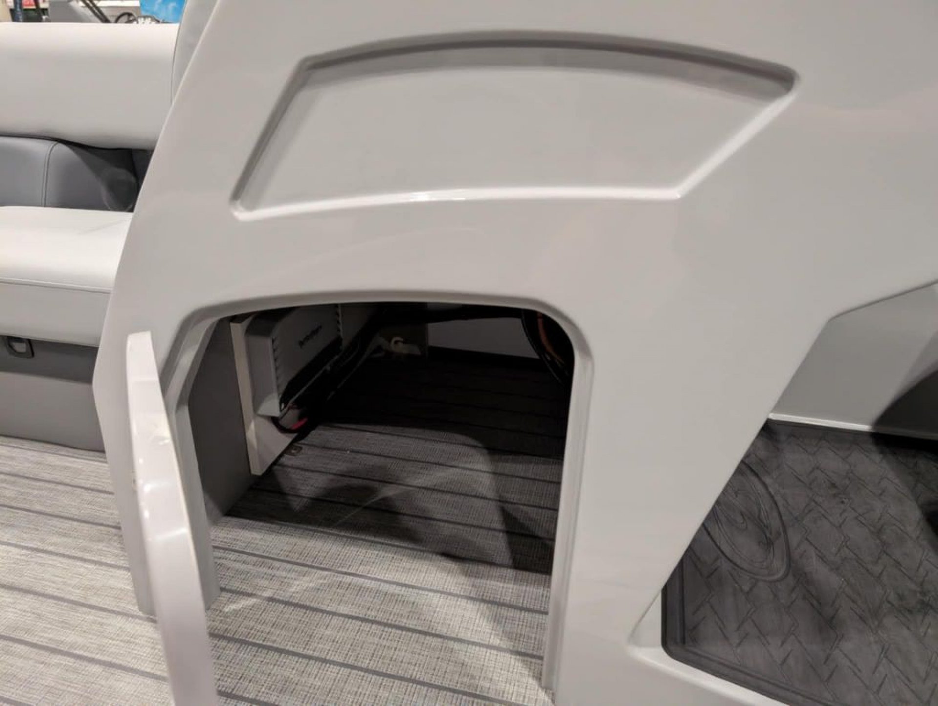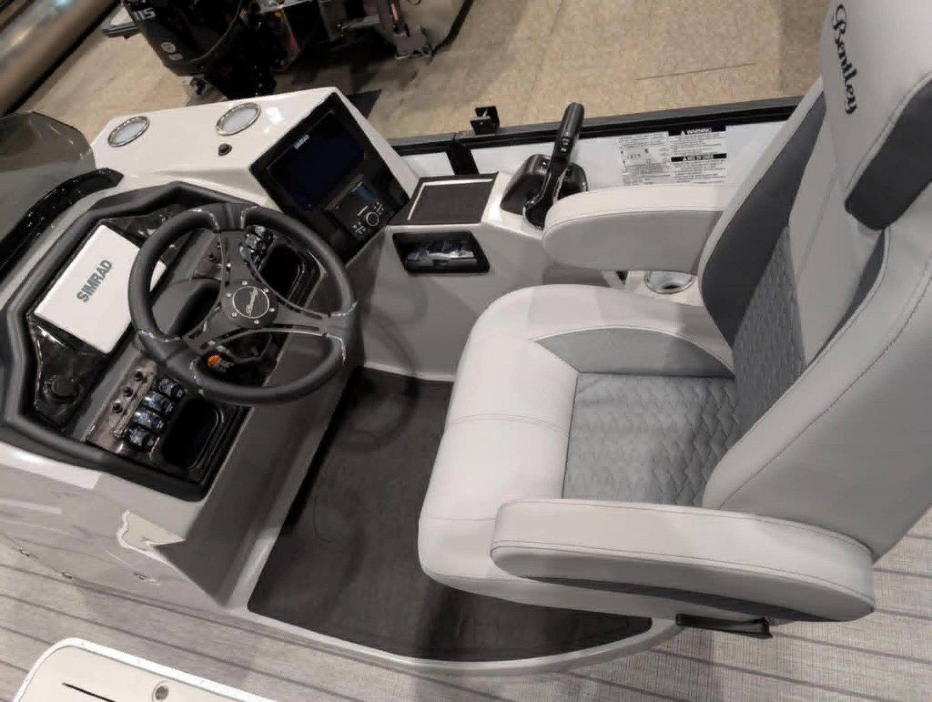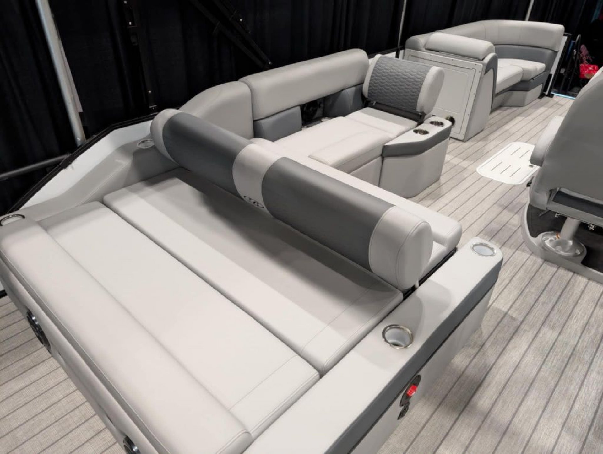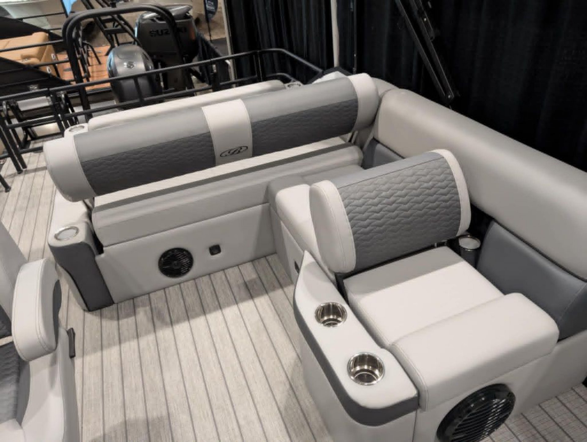 At the helm, the custom fiberglass console is equipped with an OEM digital multi-function gauge, Seastar hydraulic tilt steering, a Lowrance Elite FS7 display with GPS and depth, and a premium Rockford Fosgate stereo system with six speakers. Throughout the boat, you’ll find comfort-focused features like roto cast furniture bases, a reclining high-back captain’s chair, integrated stainless steel cupholders, seagrass weave flooring, a table with cupholders, rear entry with a stainless steel ladder, and four stainless steel flip-up cleats. LED navigation and docking lights, a 10’ bimini top with quick disconnect, and a durable bumper guard with rubber insert round out the features, making this pontoon ideal for cruising, entertaining, and family days on the water. Backed by a 5-year bow-to-stern warranty, this boat is designed to provide years of reliable enjoyment. Build sheet available upon request.