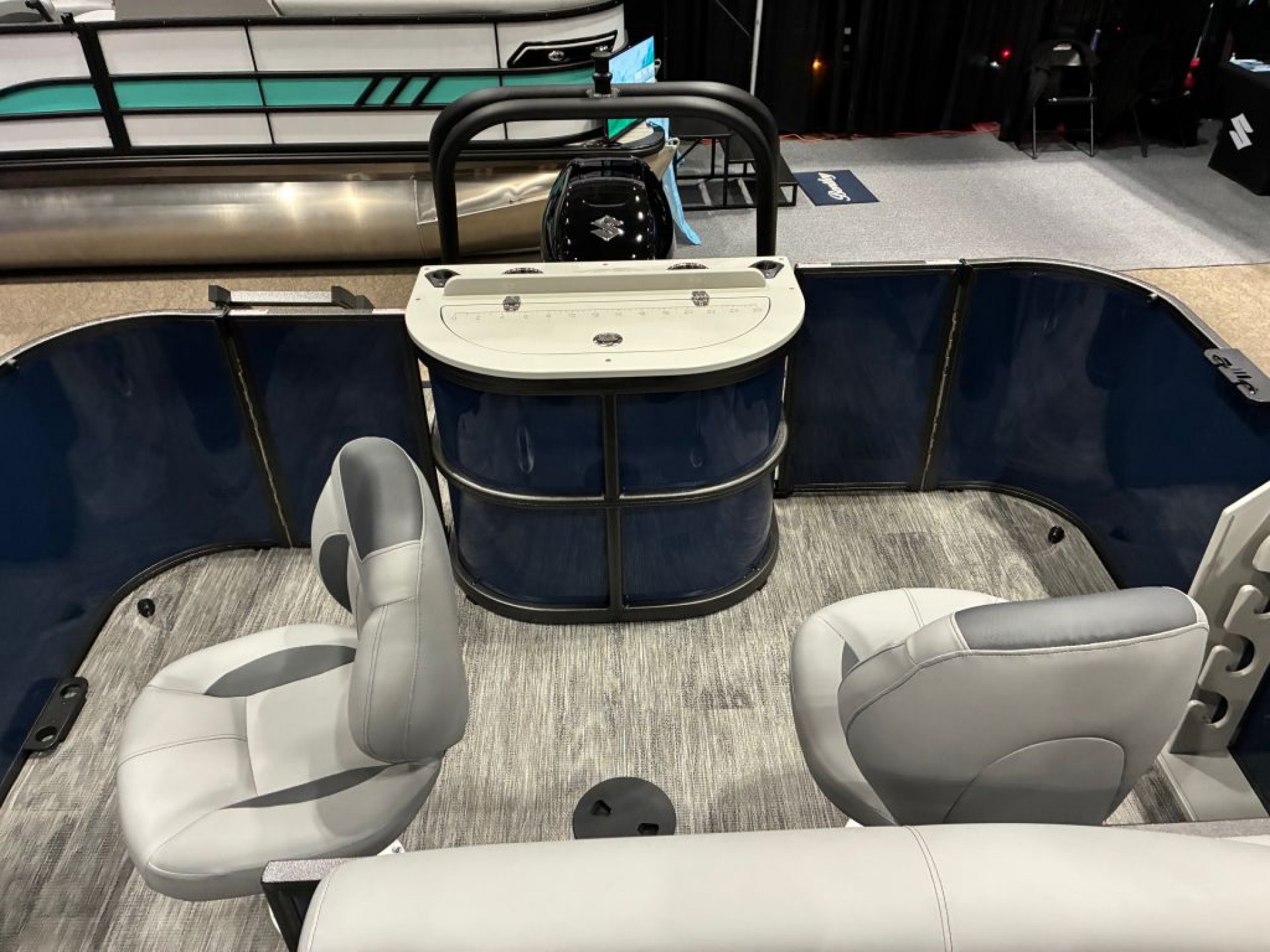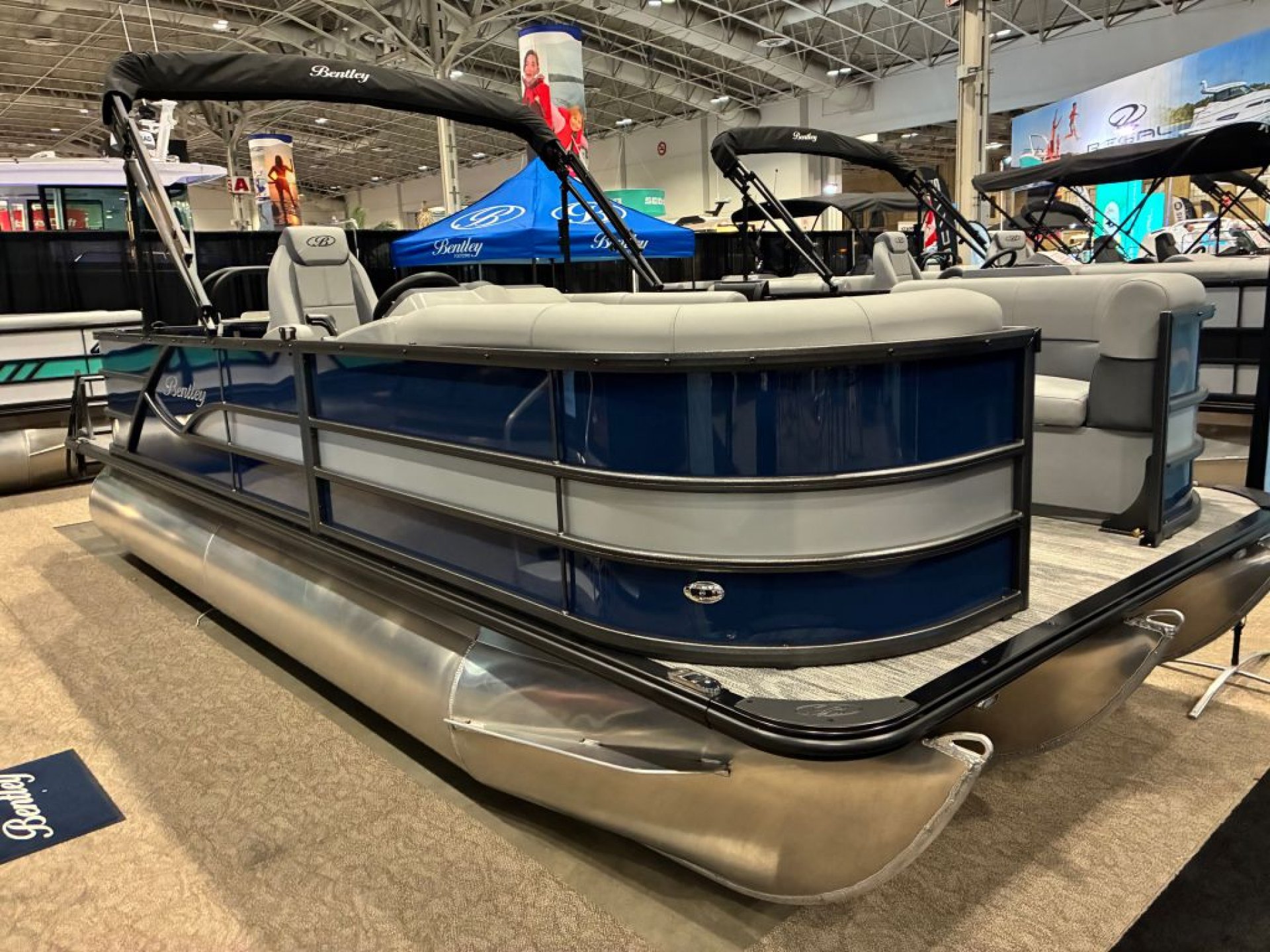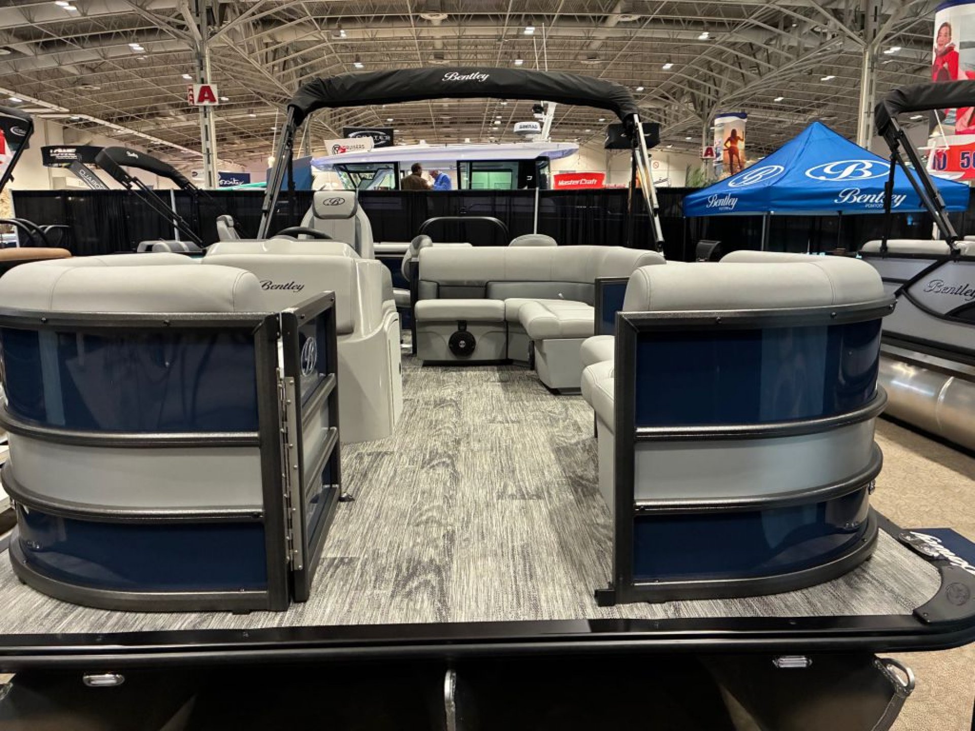 The 2026 Bentley Fish 203 Fish-N-Cruise is the perfect blend of fishing functionality and family-friendly cruising, making it an ideal choice for boaters who want versatility on the water. Finished in a striking indigo blue with matte silver accents, silver vein powder-coated rails, and the Blackout Package featuring a black anodized bimini frame and rub rail, this pontoon has a clean, modern look that stands out whether you’re pulling up to the dock or anchoring at your favorite fishing spot. Inside, the boat features comfortable SE gray furniture, a high-back captain’s chair, a convenient changing room with drop-down curtain, and durable Lakeport plank gray flooring designed to handle busy days of fishing, swimming, and relaxing.
