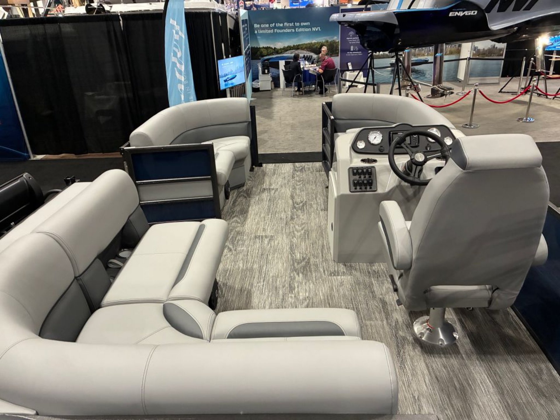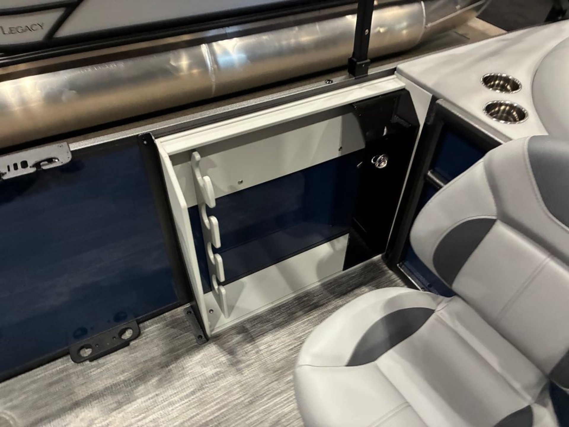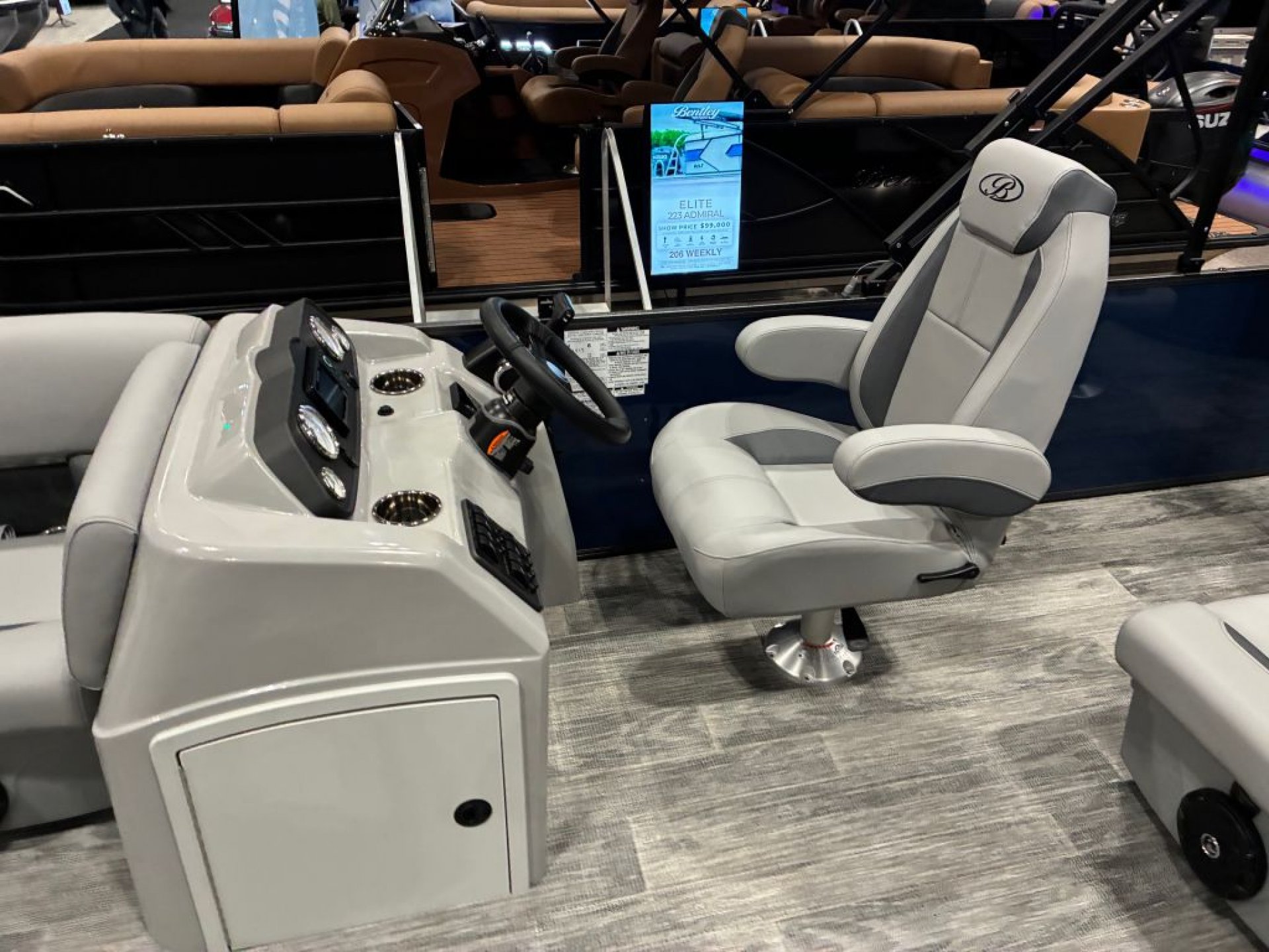 The 2026 Bentley Fish 203 Fish-N-Cruise is the perfect blend of fishing functionality and family-friendly cruising, making it an ideal choice for boaters who want versatility on the water. Finished in a striking indigo blue with matte silver accents, silver vein powder-coated rails, and the Blackout Package featuring a black anodized bimini frame and rub rail, this pontoon has a clean, modern look that stands out whether you’re pulling up to the dock or anchoring at your favorite fishing spot. Inside, the boat features comfortable SE gray furniture, a high-back captain’s chair, a convenient changing room with drop-down curtain, and durable Lakeport plank gray flooring designed to handle busy days of fishing, swimming, and relaxing.