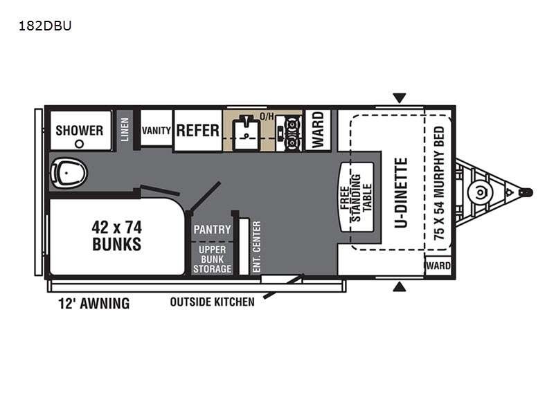 Perfect for families, couples, or first-time RVers, the Viking 182DBU offers a versatile layout with a Murphy bed up front, double-over-double bunks, and a spacious U-shaped dinette. At just over 22 feet and under 4,000 lbs dry weight, it's towable by many mid-size SUVs and trucks-making it a smart choice for easy travel and big adventures.