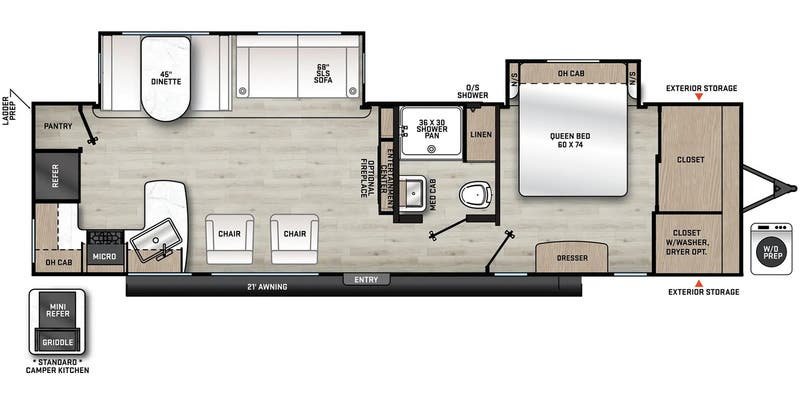 - Awning: 21' Electric with Multicolor Lights and Remote