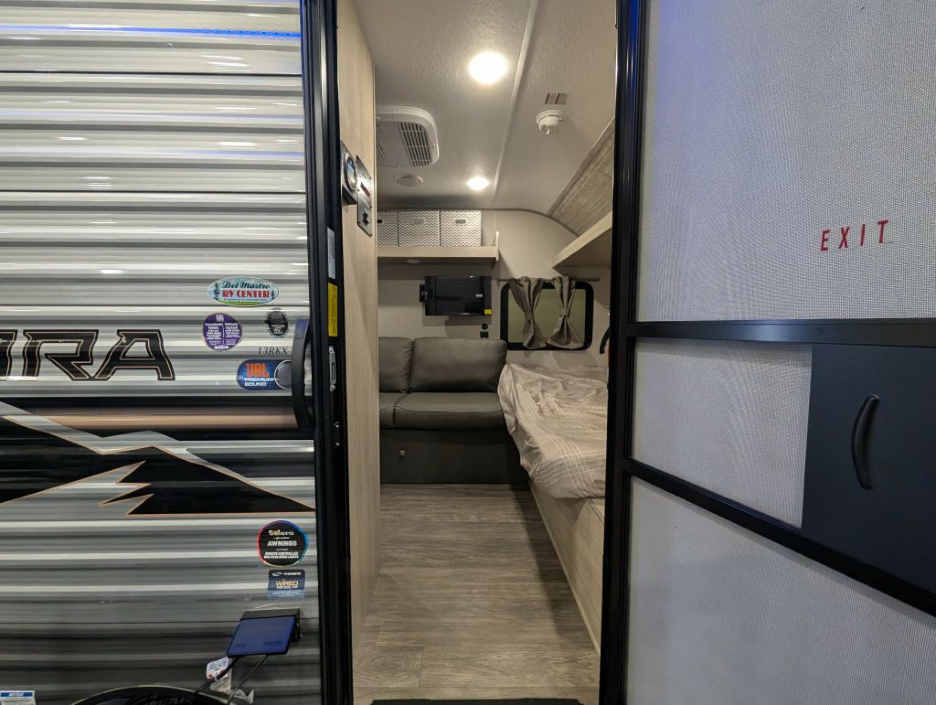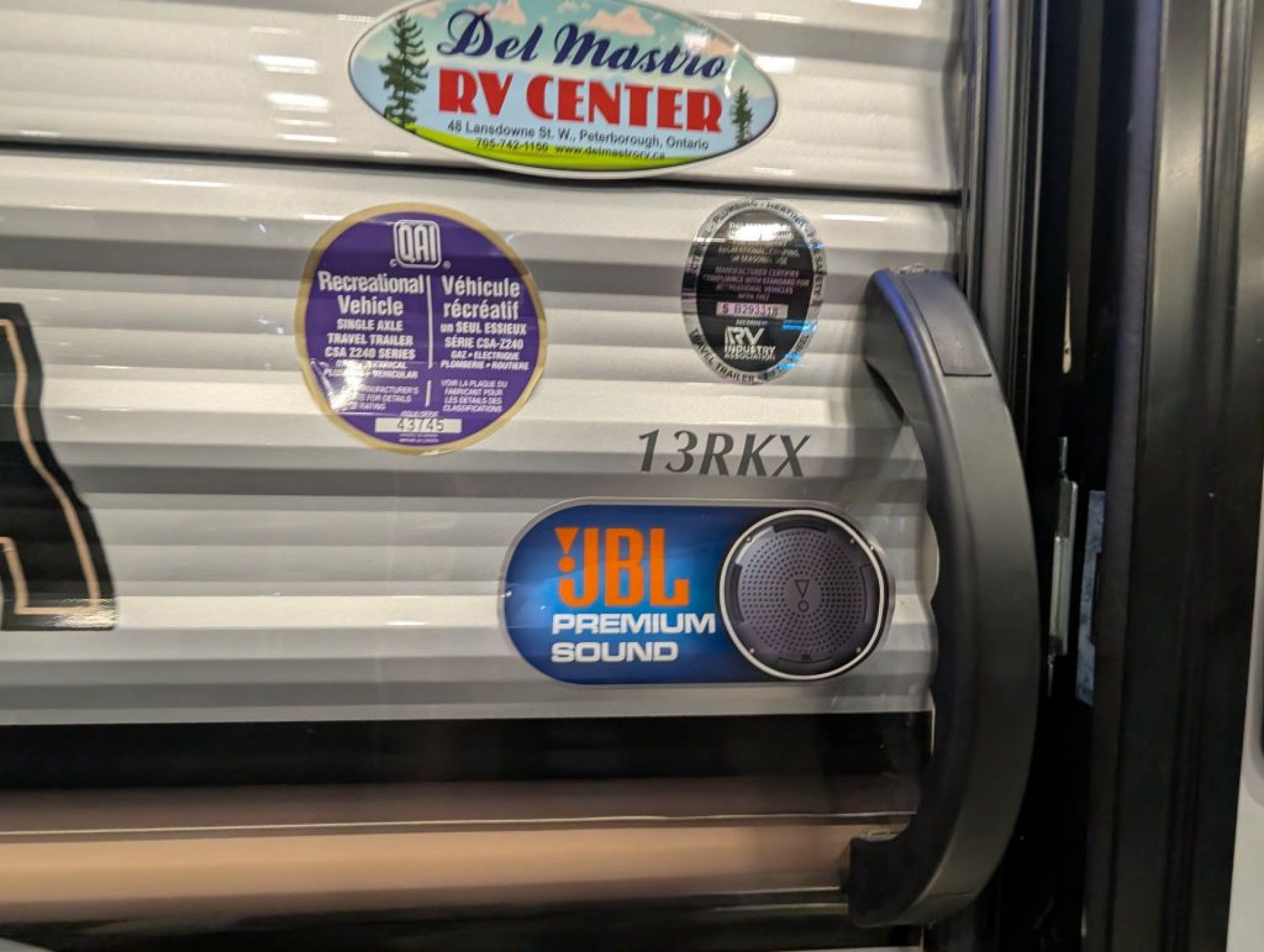 - Exterior Features: Safe-T Rail Door Assist on Main Entry Door; Flush Mount Baggage Doors; Electric Awning with Multicolor Lights and Remote; Upgraded JBL Elite Exterior Speaker; Ladder Prep; Battery Disconnect; All-Terrain Tires (Single Axles Only); Peak Performance Solar Package - 30A Controller with 200W Solar Panel (Optional)