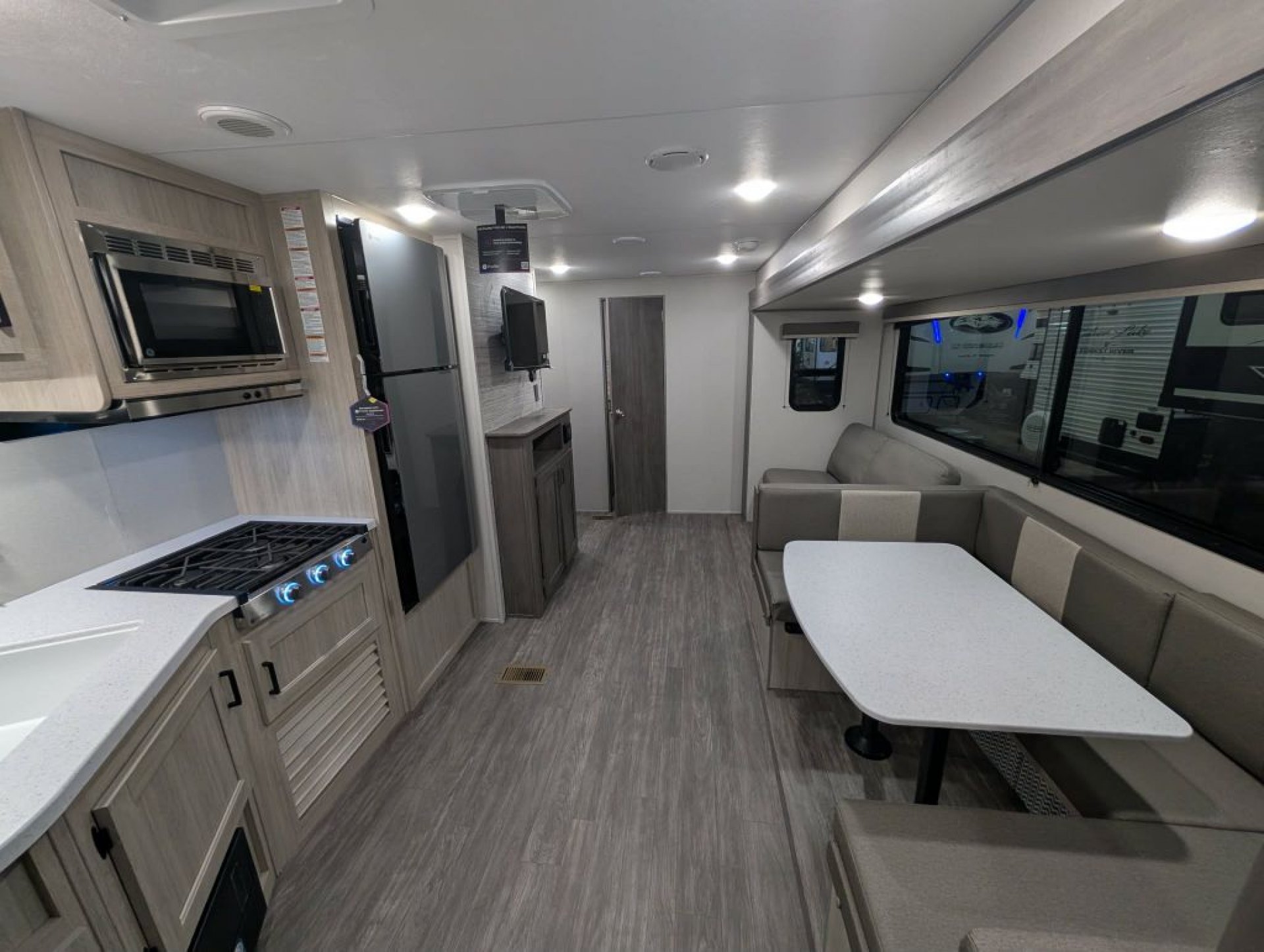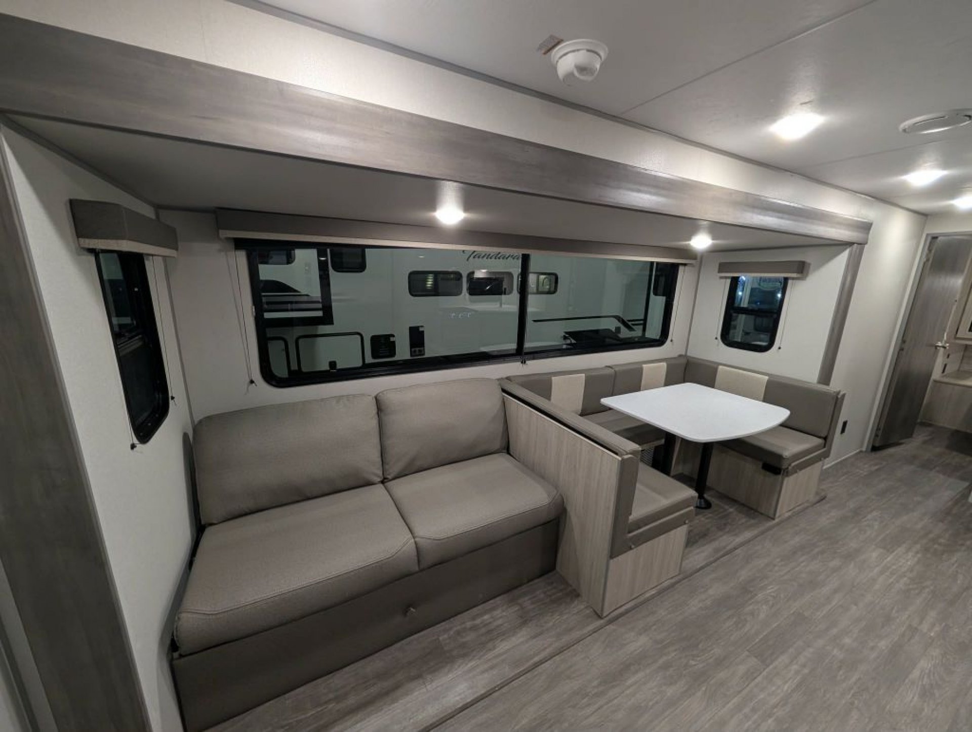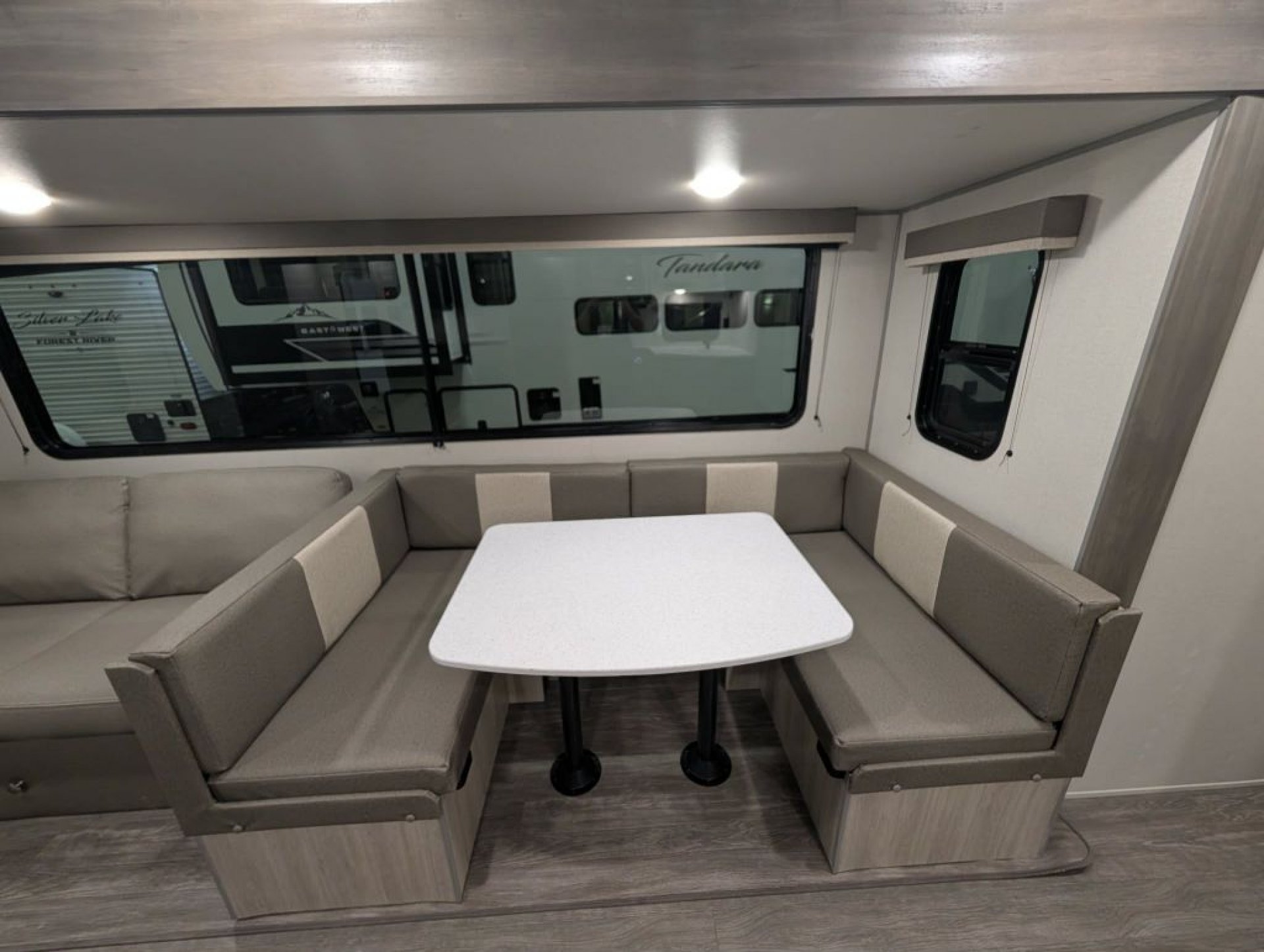 - Slideouts: 1 large main slide-out containing the dinette and sofa.