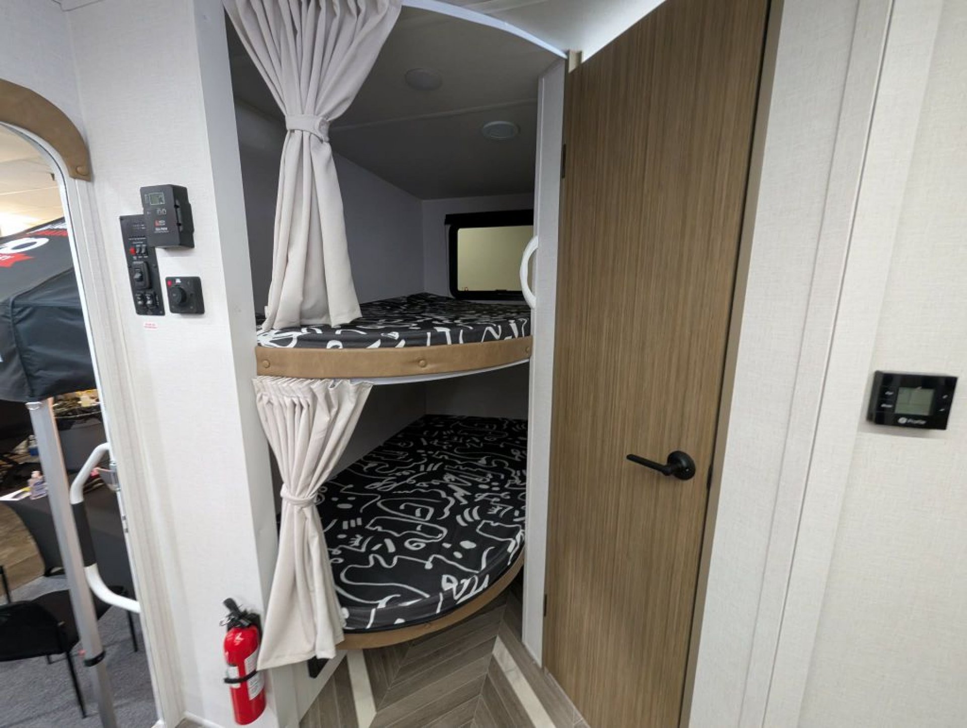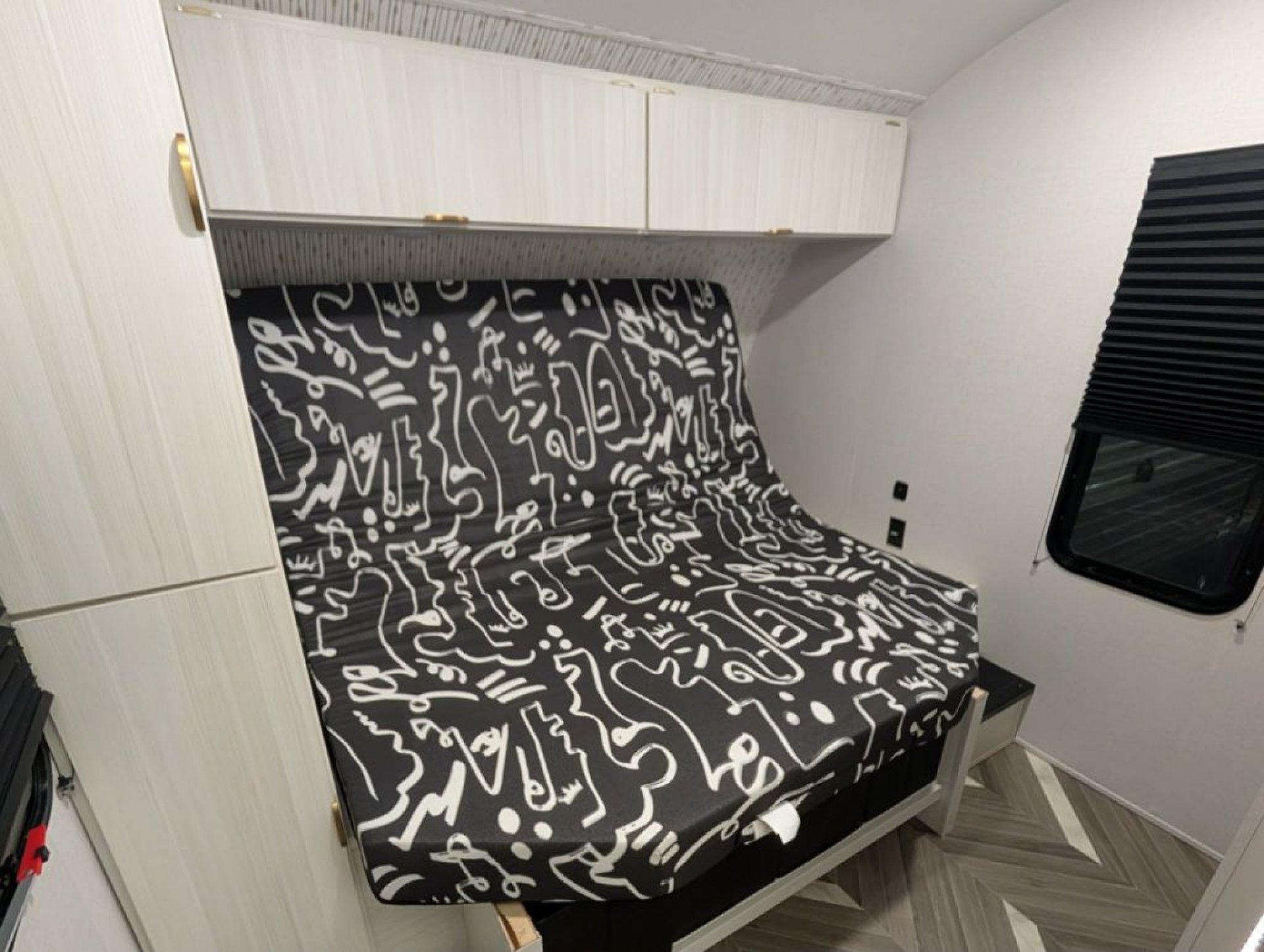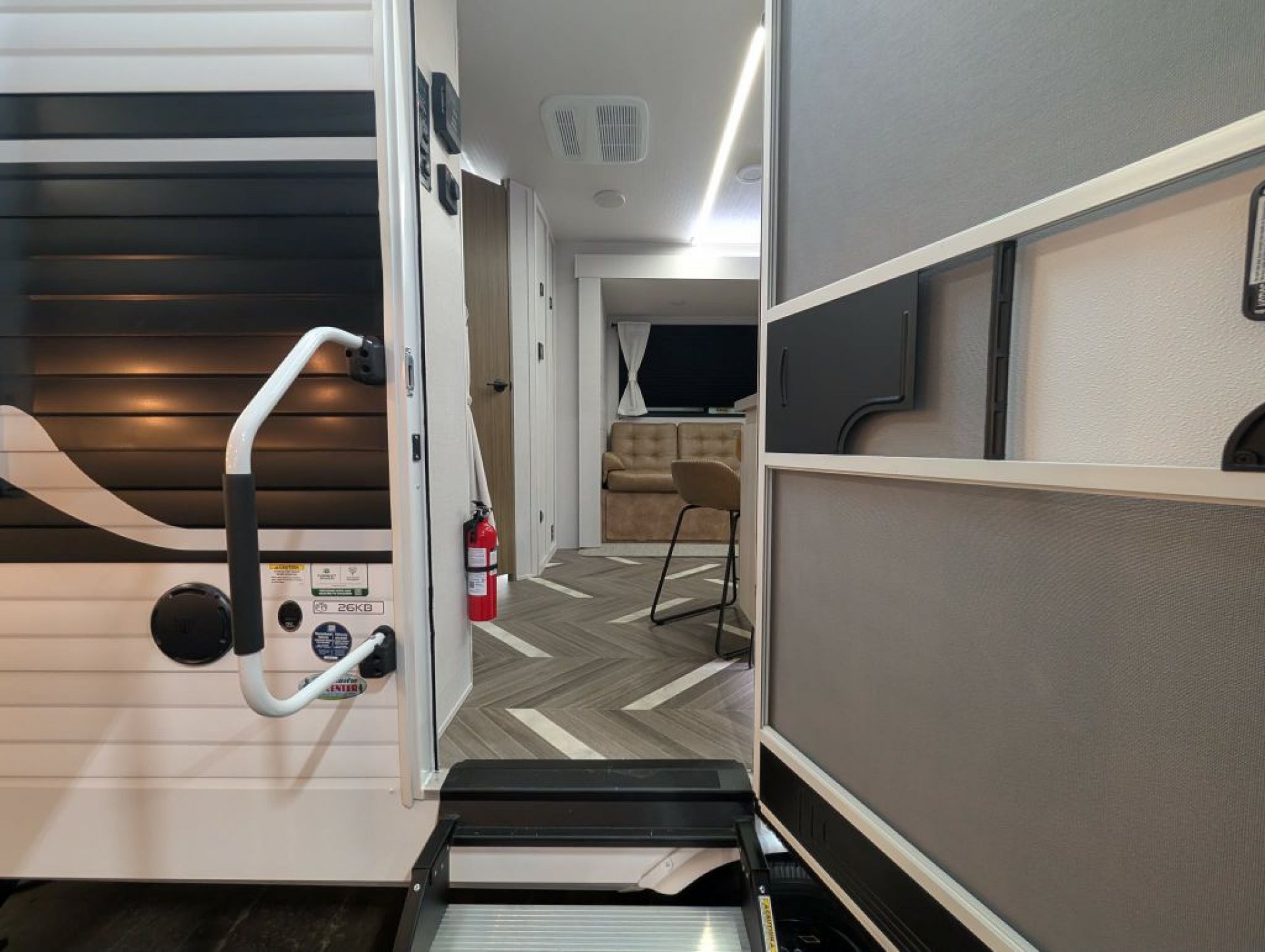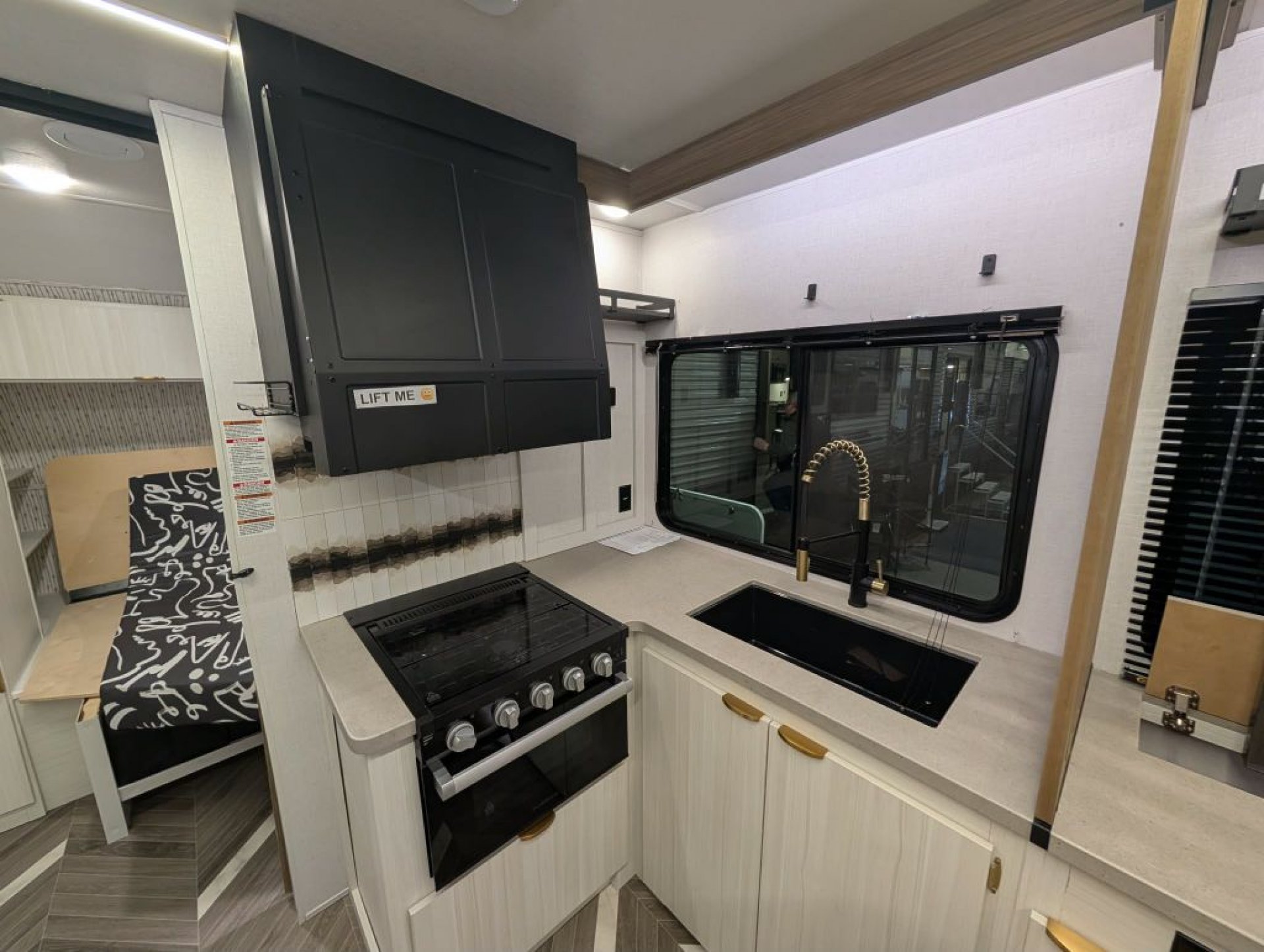 Inside, enjoy a bright and inviting living area with dimmable LED "Blade Lighting," a JBL interior/exterior sound system, and a Versa Tilt Bed Incliner for added comfort. The double bunks offer plenty of room for kids or guests, while the deep basin kitchen sink, seamless countertops, and upgraded appliance package make mealtime simple and efficient.