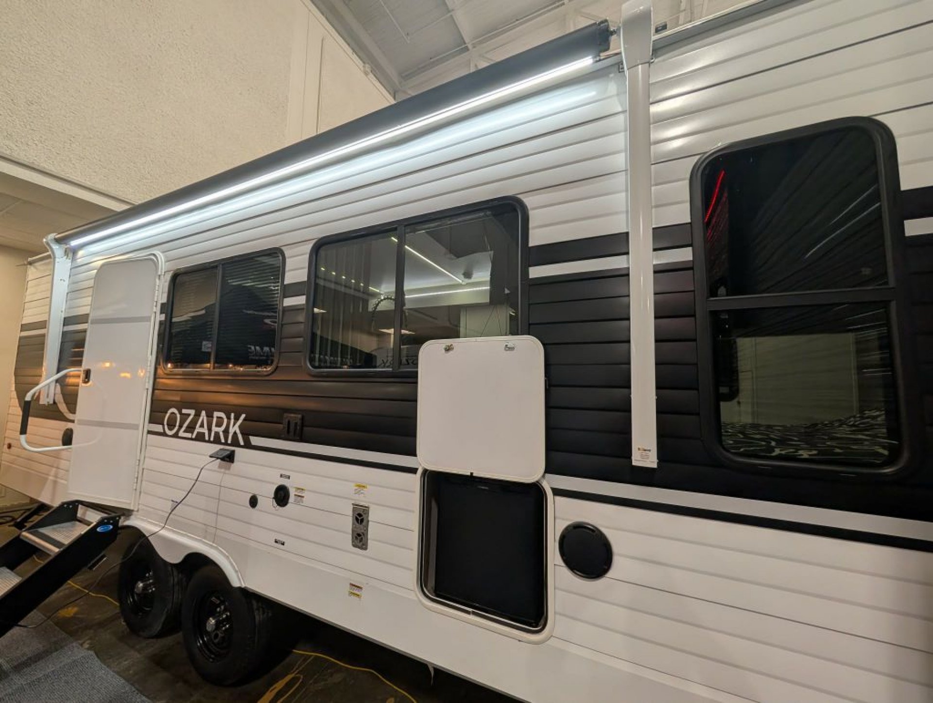 Built to handle every adventure, the Ozark features 5/8" tongue-and-groove plywood floor decking, a 35 Mil TPO roof membrane, and a powder-coated I-beam frame for exceptional strength and towing performance. With solar prep, backup camera prep, and nitrogen-filled tires, you're ready for the journey ahead.