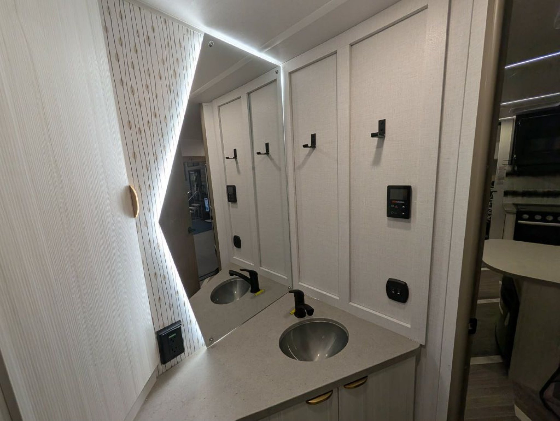 The Premier Partner Package adds extra value with premium touches like a 60,000 BTU on-demand tankless water heater, extra-large black glass 12V refrigerator, and an enclosed "Accessibelly" underbelly system for climate and debris protection.