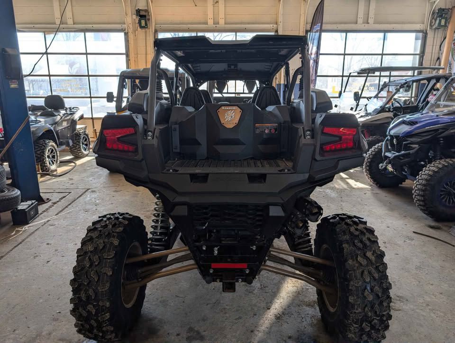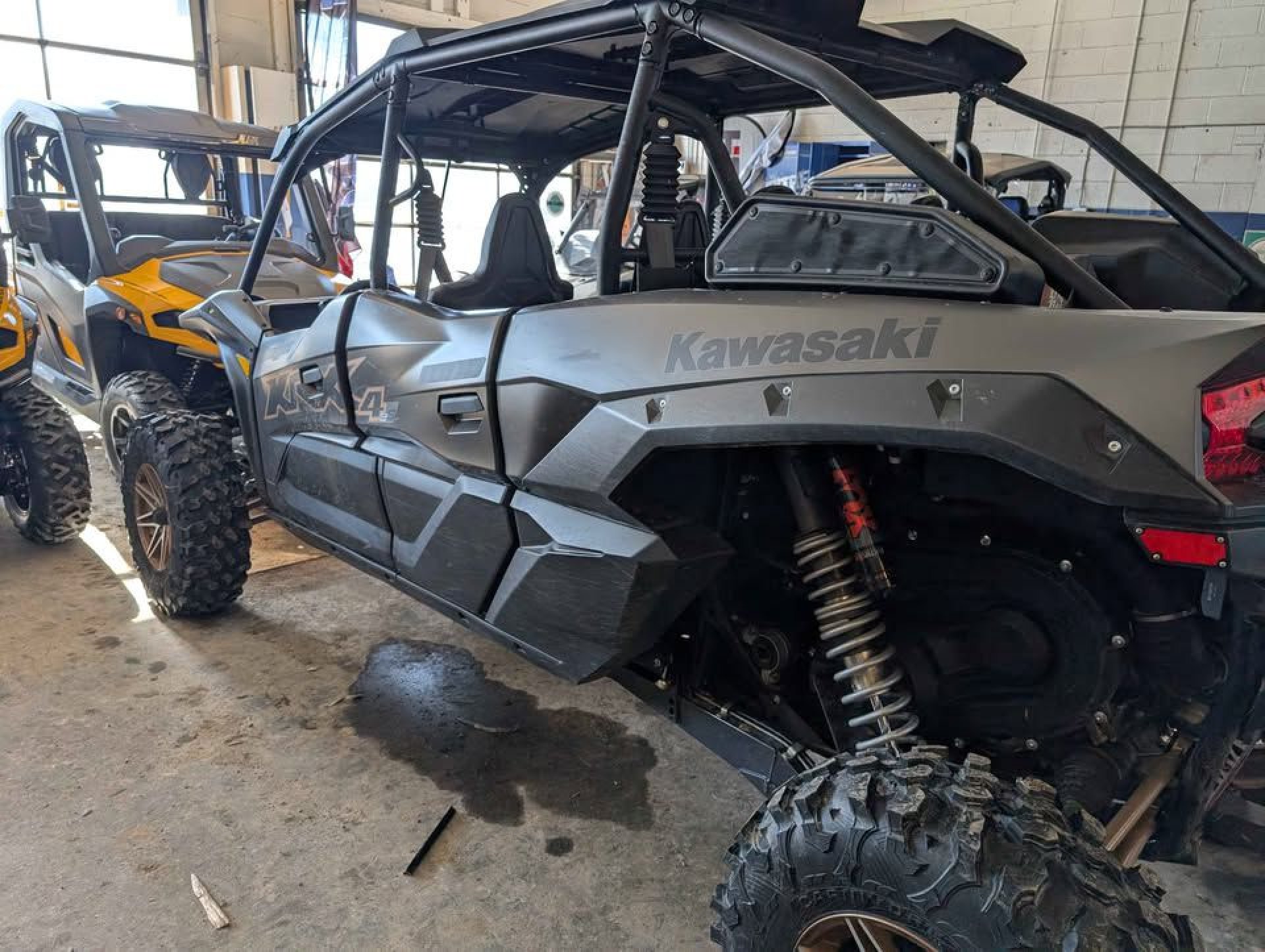 • Suspension: The "eS" model features Kawasaki Electronic Control Suspension (KECS), which works with FOX 2.5 Live Valve Internal Bypass shocks to provide three-mode adjustable, real-time damping (Soft, Normal, Firm).